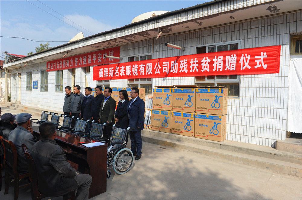 10月24日上午,巍雅斯名表眼鏡有限公司助殘扶貧捐贈儀式在臨洮縣中鋪鎮(zhèn)政府舉行,巍雅斯名表眼鏡有限公司向中鋪鎮(zhèn)殘疾人資助了19100元現(xiàn)金并捐贈了價值11970元的輪椅及拐杖等,希望能夠解決受捐助的殘疾人當(dāng)前的困難。臨洮縣人大常委會主任蔣景林參加捐贈儀式并講話,高度評價了巍雅斯在社會公益慈善事業(yè)常年來所做的努力。