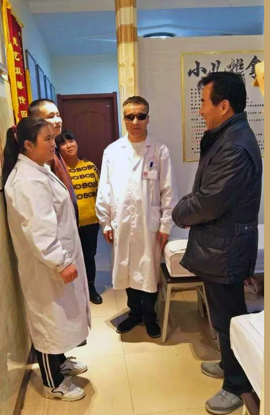 裴總一行現(xiàn)場(chǎng)觀摩了盲人按摩師的按摩手法,并與經(jīng)營(yíng)負(fù)責(zé)人黃寶軍及按摩師進(jìn)行了親切交談,鼓勵(lì)黃寶軍要充分發(fā)揮好帶頭示范作用,依托金手指一、二分店,努力提升按摩技能,帶動(dòng)更多的盲人自立、自信、自強(qiáng),打造一支穩(wěn)定一流的金手指按摩師隊(duì)伍,用高超的按摩技藝創(chuàng)造幸福美好生活。