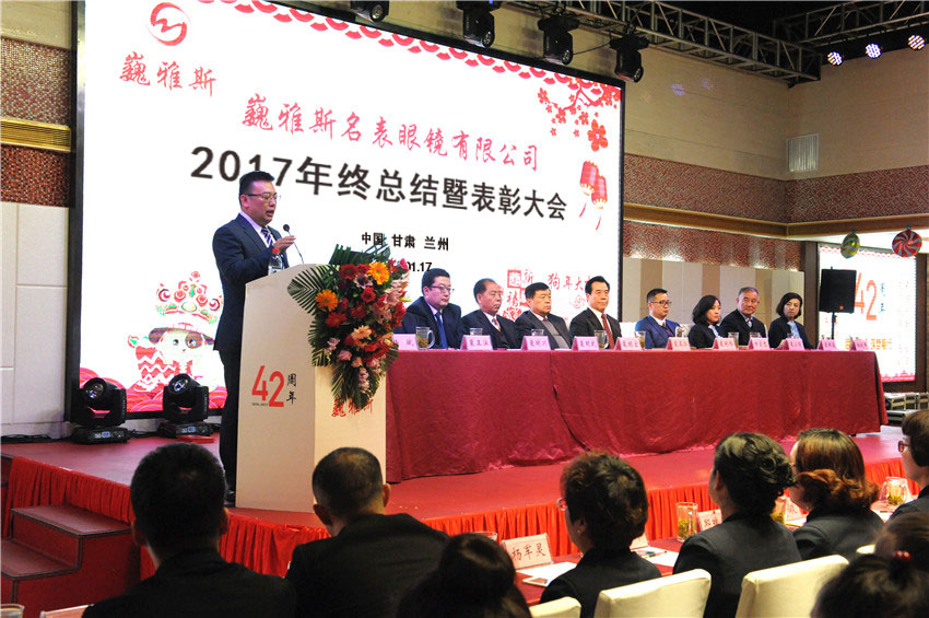 1月17日下午,巍雅斯名表眼鏡有限公司2017年度年終總結(jié)暨表彰大會(huì)在蘭州舉行。來自巍雅斯名表眼鏡有限公司各個(gè)部門,以及臨洮、蘭州、西安、銀川等公司及西寧分部的中高層管理人員、優(yōu)秀員工、一線員工代表等300余人出席了本屆年會(huì)。