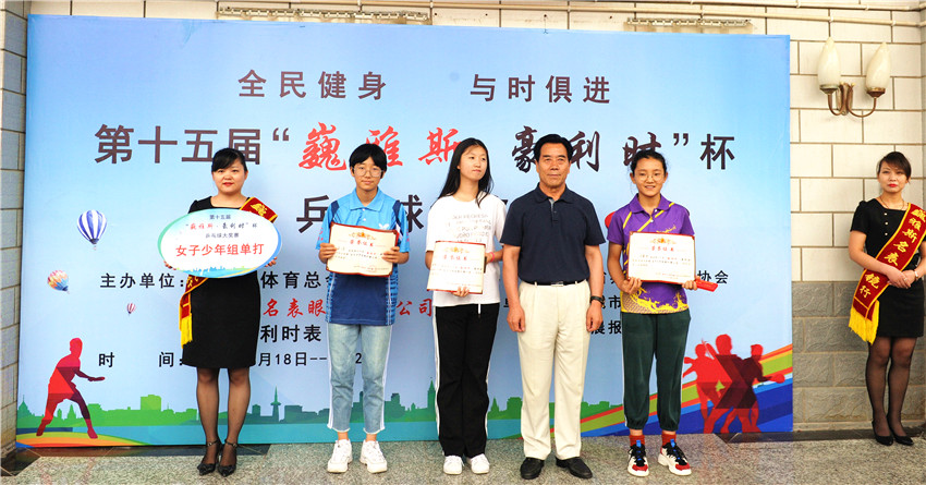 第十五屆“巍雅斯·豪利時”杯乒乓球大獎賽少年兒童組比賽舉行頒獎儀式