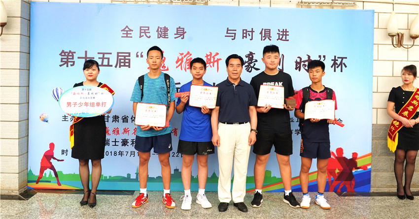 中國鐘表商會副會長、甘肅省眼鏡協(xié)會會長、甘肅省乒協(xié)副會長、巍雅斯名表眼鏡有限公司董事長裴正江、甘肅省乒乓球運(yùn)動協(xié)會會長韓力、原蘭州城市學(xué)院院長王汝鋒、巍雅斯名表眼鏡有限公司副總裁裴明宏、甘肅省乒乓球運(yùn)動協(xié)會秘書長宋建農(nóng)、裁委會主任石振民、夲次大獎賽裁判長關(guān)欣出席頒獎儀式并為獲獎代表隊(duì)和運(yùn)動員頒獎。