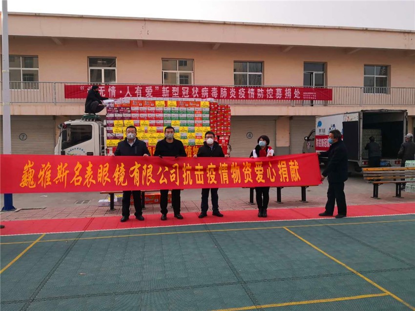 2月7日和8日,巍雅斯名表眼鏡有限公司響應(yīng)黨和國家的號(hào)召,以實(shí)際行動(dòng)參與到防控疫情的戰(zhàn)斗中來,以赤子之心向奮戰(zhàn)在一線的勇士們致敬,特向蘭州市城關(guān)區(qū)、定西市臨洮縣捐贈(zèng)總價(jià)值15萬元抗擊疫情物資。