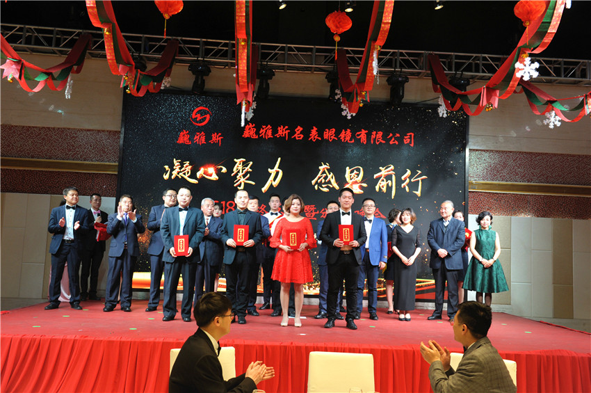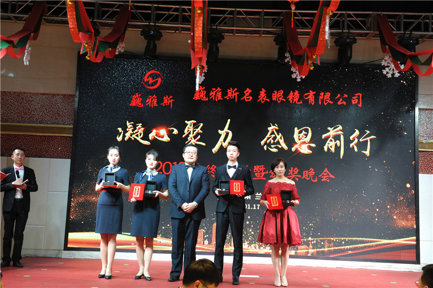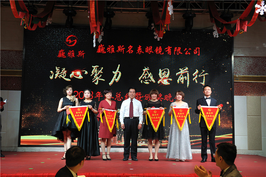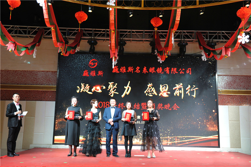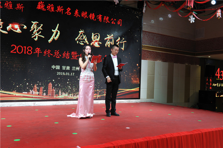 1月17日下午,巍雅斯名表眼鏡有限公司2018年終總結(jié)暨頒獎晚會在蘭州舉行,本次年會以“凝心聚力、感恩前行”為主題,來自公司各個部門,以及臨洮、蘭州、西安、銀川等分公司及西寧分部的中高層管理人員、優(yōu)秀員工、入職5年以上的一線員工代表等200多人出席了本屆年會。