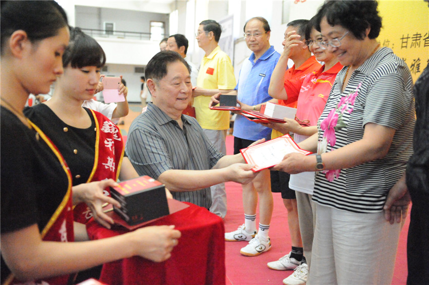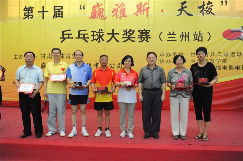 經(jīng)過5天的激烈角逐,由甘肅省體育總會、巍雅斯名表眼鏡有限公司和瑞士天梭表主辦,甘肅省乒乓球協(xié)會承辦,蘭州城市學(xué)院、甘肅省廣播電影電視總臺、蘭州晨報協(xié)辦的,全民健身與時俱進(jìn),第十屆“巍雅斯?天梭”杯乒乓球大獎賽(蘭州站),于8月18日在蘭州城市學(xué)院培黎體育館落下帷幕。國際乒乓球聯(lián)合會終身名譽(yù)主席、原國家體育運(yùn)動委員會副主任徐寅生專程從上海趕來,甘肅省政協(xié)副主席張景輝、蘭州軍區(qū)政治部副主任王文杰、原甘肅省十屆人大副主任吳碧蓮、原蘭州軍區(qū)副參謀長楊旭華、原蘭州軍區(qū)空軍副參謀長欒連續(xù)、甘肅省體育局局長楊衛(wèi)、蘭州城市學(xué)院院長王汝峰、中國鐘表商會副會長、甘肅省眼鏡協(xié)會會長、甘肅省乒協(xié)副主席、巍雅斯名表眼鏡有限公司董事長裴正江、甘肅省司法廳巡視員、甘肅省乒協(xié)副主席張克年、甘肅省乒乓球運(yùn)動協(xié)會主席穆端敏、甘肅省體育總會常務(wù)副秘書長丁思林等領(lǐng)導(dǎo)出席了閉幕儀式,并為運(yùn)動員頒獎。原蘭州軍區(qū)副參謀長楊旭華致閉幕詞,宣布本屆大獎賽閉幕。 第十屆“巍雅斯·天梭”杯大獎賽單打比賽成績