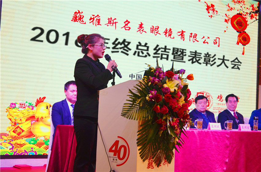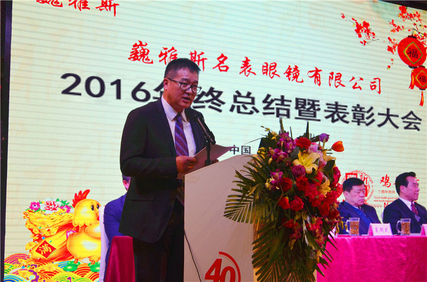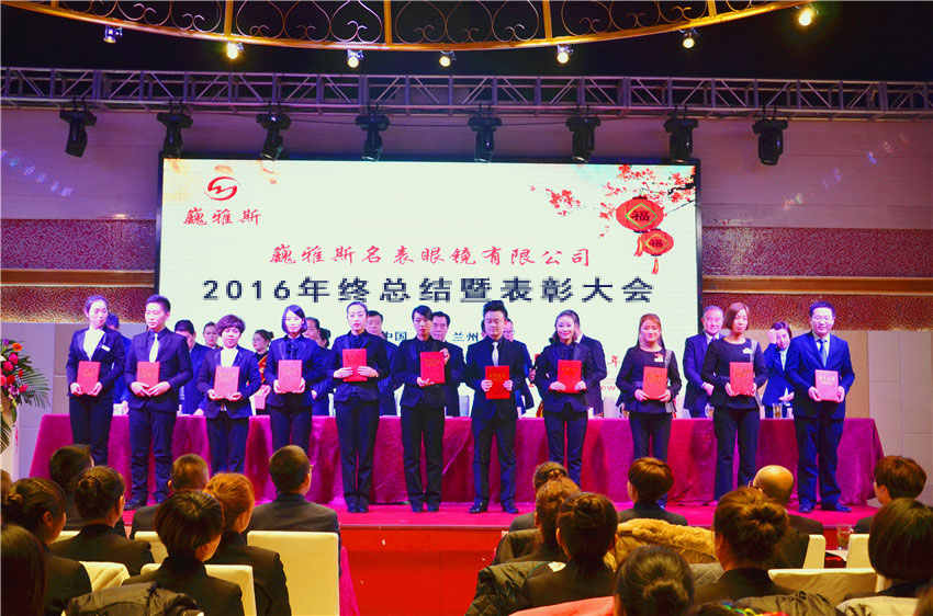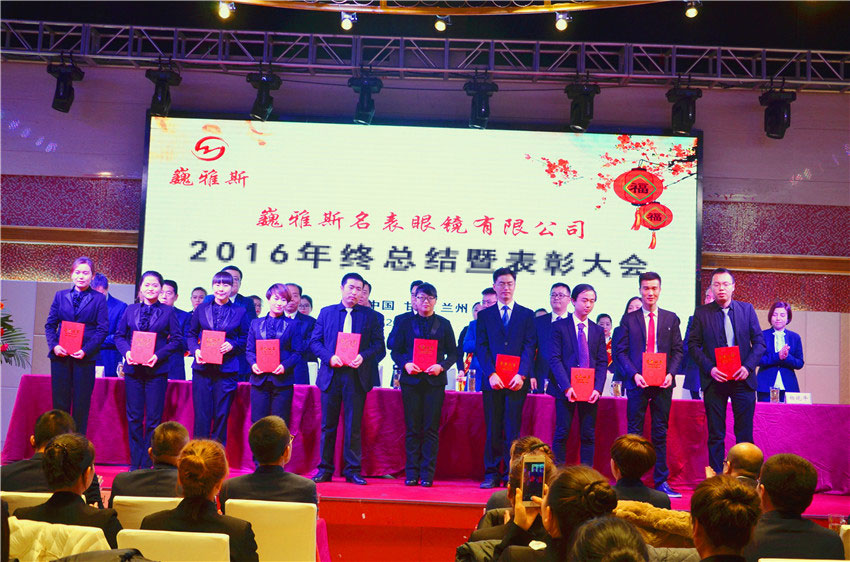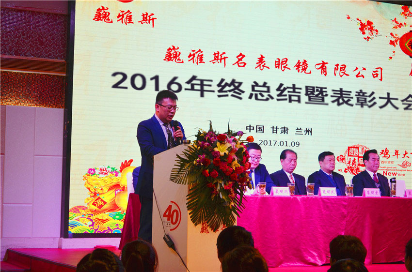 1月9日下午巍雅斯名表眼鏡有限公司2016年度年終總結暨表彰大會在蘭州舉行。來自巍雅斯名表眼鏡有限公司各個部門,以及臨洮、蘭州、西安、銀川等公司及西寧和拉薩分部的中高層管理人員、優(yōu)秀員工、一線員工代表等300余人出席了本屆年會。本次年會恰值巍雅斯創(chuàng)始40周年,對于參加本屆年會的員工而言,更顯意義非凡。