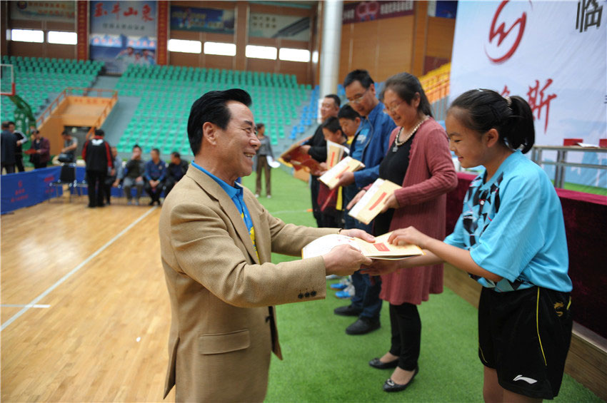 甘肅省乒乓球運(yùn)動(dòng)協(xié)會(huì)會(huì)長(zhǎng)韓力,甘肅省乒乓球運(yùn)動(dòng)協(xié)會(huì)副會(huì)長(zhǎng)、巍雅斯名表眼鏡有限公司董事長(zhǎng)裴正江,甘肅省乒乓球運(yùn)動(dòng)協(xié)會(huì)秘書(shū)長(zhǎng)宋建農(nóng),臨洮縣總工會(huì)常務(wù)副主席張國(guó)林、臨洮縣體育運(yùn)動(dòng)中心主任劉儉、臨洮縣總工會(huì)副主席劉艷,巍雅斯名表眼鏡有限公司總裁裴明偉,巍雅斯名表眼鏡有限公司副總裁裴明宏,廣河縣誠(chéng)德民族用品有限公司總經(jīng)理馬應(yīng)虎等領(lǐng)導(dǎo)出席閉幕式并為獲獎(jiǎng)運(yùn)動(dòng)員頒獎(jiǎng)。