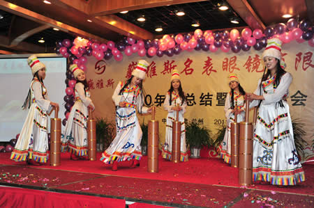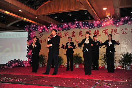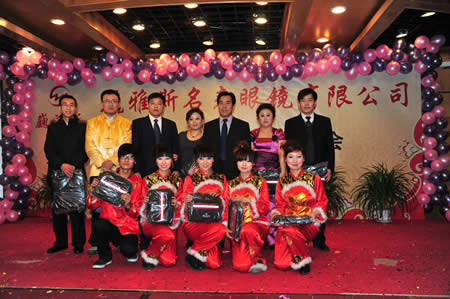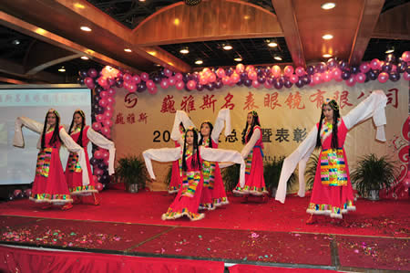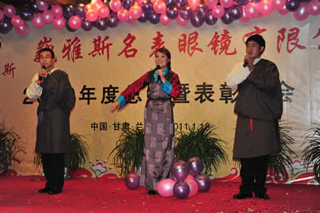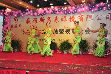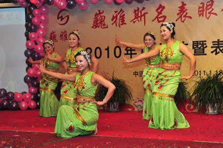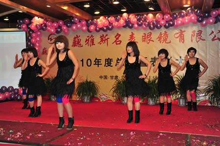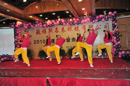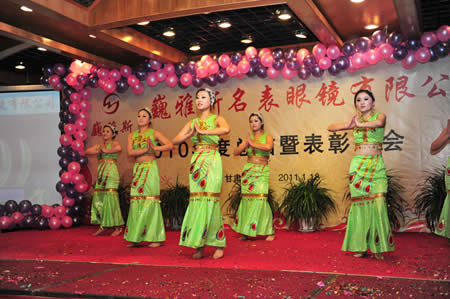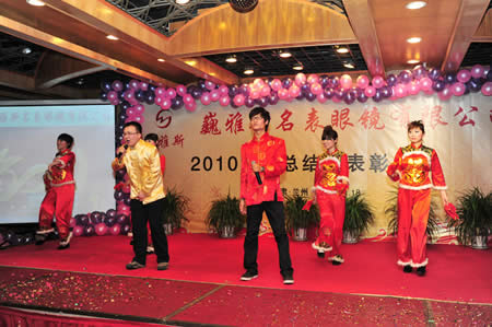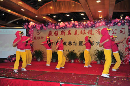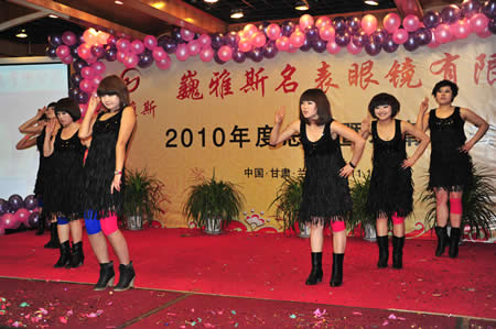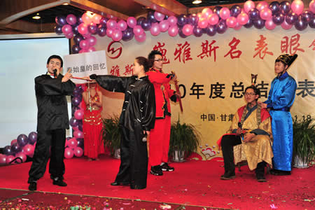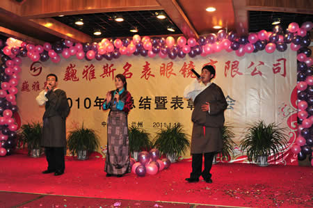 2011年1月18日,巍雅斯名表眼鏡有限公司2010年度總結(jié)暨表彰先進大會在蘭州錦江陽光酒店舉行,來自西安、銀川、西寧、拉薩、天水等地的部分員工240多人歡聚一堂,共敘友誼、共商發(fā)展,會餐后舉辦了豐富多彩的聯(lián)歡晚會。前來走訪的以經(jīng)營古馳、迪奧、BOSS、阿瑪尼等高端眼鏡品牌為主的意大利霞飛諾集團中國區(qū)總裁雅各布(Jacopo)先生及日本尼康鏡片西北區(qū)業(yè)務(wù)經(jīng)理張海青先生也興致勃勃的參加了晚宴和聯(lián)歡晚會。